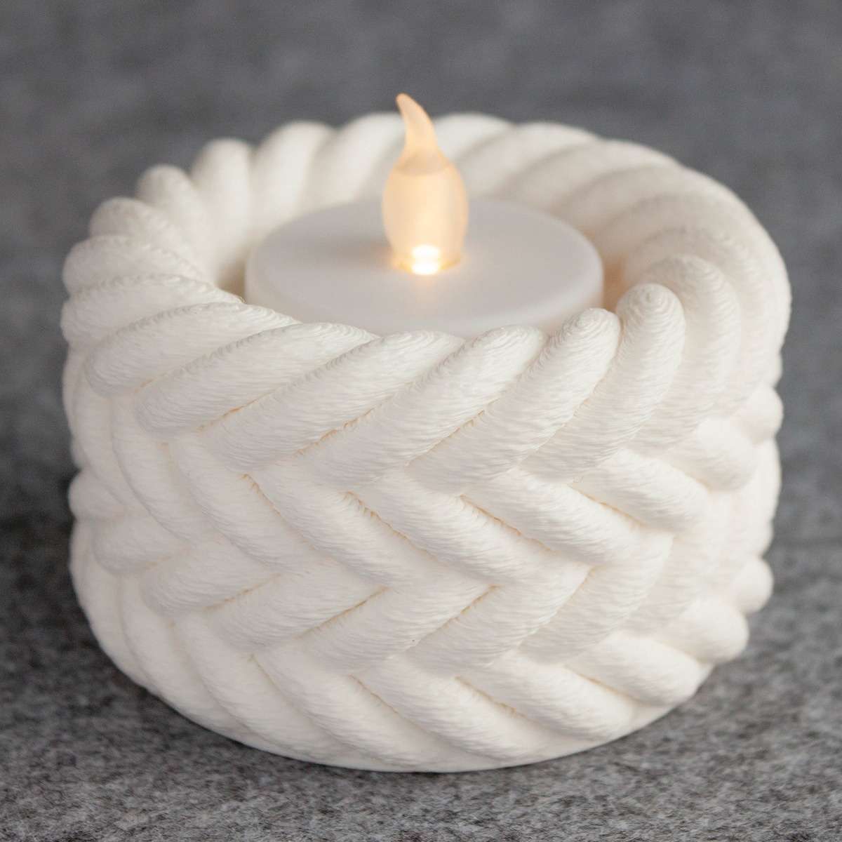 У сучасному світі затишку забагато не буває. Свічник із мотузки – саме той елемент декору, що створює тепло. Це стильний циліндр, сплетений із фактурної мотузки, який виглядає, ніби його в’язали з м’якої вовни. Його форма нагадує маленький кошик, де всередині затишно мерехтить світло світлодіодної “чайної” свічки. 🧺✨