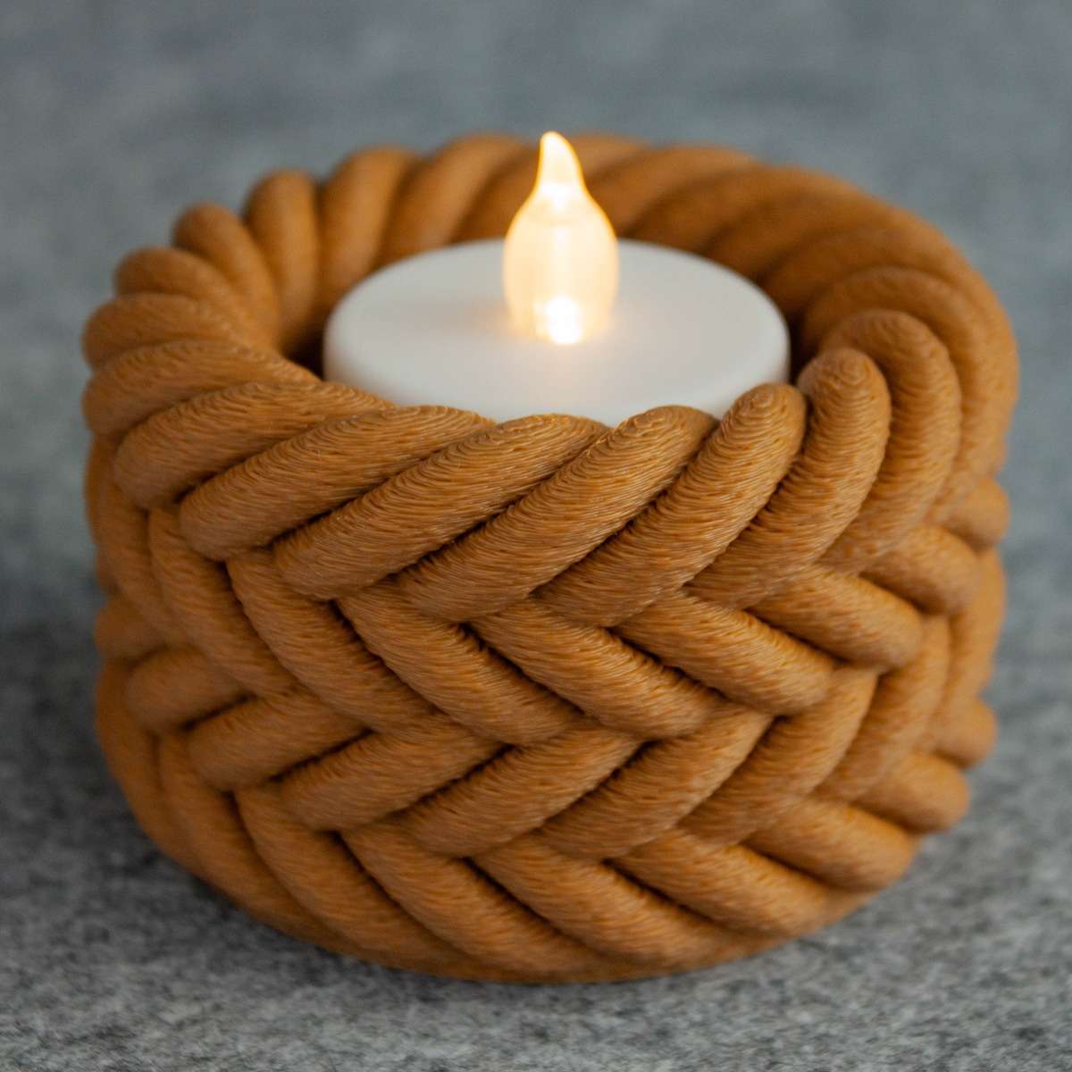 Подаруйте собі момент тиші, запаливши маленьке світло у маленькому кошику. Свічник із мотузки — там, де тепло живе поруч.